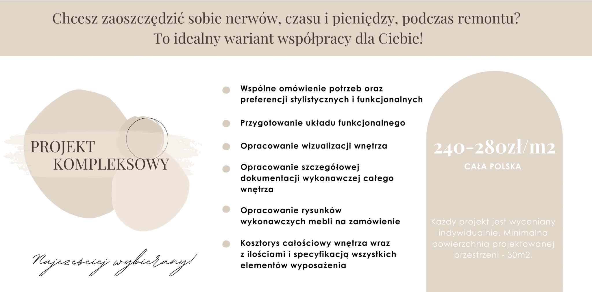 Kluczowe dla wyceny są: typ budynku (mieszkanie/dom), ilość pomieszczeń, ich metraż oraz określenie zakresu prac (czy jest to kompletna przebudowa, odświeżenie, czy będziemy bazować na aktualnym rozmieszczeniu ścian).